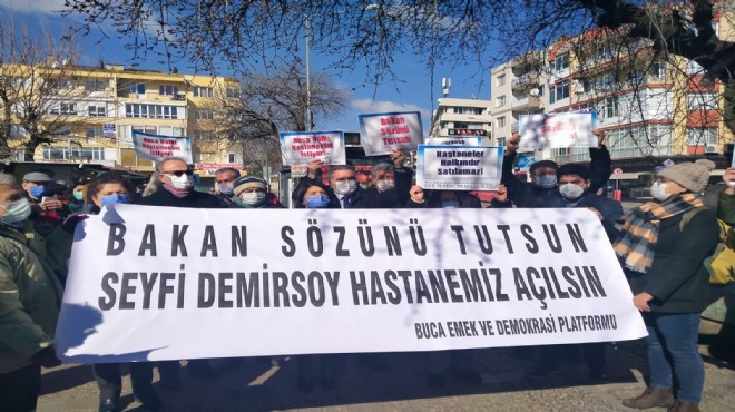 İlçede başka devlet hastanesi bulunmaması nedeniyle halkın sağlık hizmetlerine erişmede sıkıntılar yaşadığını vurgulayan Akcan, “Hastane binasının yıkılıp yeni hastane binasının ne zaman yapılacağı belirsizdir. Hastanenin kapatılmasıyla birlikte başta İzmir’in en kalabalık ilçesi Buca halkı olmak üzere çevre ilçelerde yaşayan halkta pandemi koşulları göz önünde bulundurulduğunda sağlık hizmetine ulaşmada zorluklar yaşamış vatandaşlar özel hastanelere mecbur bırakılmıştır. Özel hastanelere her türlü teşviki sunan, hasta garantili şehir hastanelerinin ödemelerini geciktirmeyen; yandaş müteahhitlerin yüzlerce hastane yapmaya yetecek vergi borcunu silen hükümet; Buca halkına verdiği hastane sözünü tutmamaktadır. Bizler Buca emek ve demokrasi güçleri olarak Halkın hastanesinin en kısa sürede yapılıp, hizmete açılmasını istiyor ve sağlık hizmetinin herkes için parasız ve kolay ulaşılabilir olması için Buca halkını ve tüm İzmir’i hep birlikte mücadele etmeye çağırıyoruz. Bizler sağlık hizmetini alanlar ve sağlık hizmetini verenler olarak söz verilen sahra hastanesinin bir an önce hizmete açılmasını talep ediyoruz. Planlanan sahra hastanesi acilen hizmete açılmalıdır. Hastane binası en kısa sürede yapılmalıdır” ifadelerini kullandı.