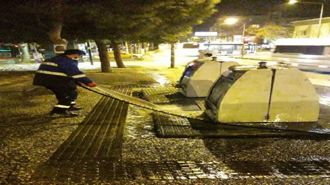 Koronavirüs (Covid-19) tehdidi başta olmak üzere çöp konteynerlerinin enfeksiyon yayma riskini ortadan kaldırmak için Buca Belediyesi Temizlik İşleri Müdürlüğü ekipleri, sokağa çıkma yasağı saatlerinde trafiği aksatmamak adına ilçe genelindeki çöp konteynerlerini temizledi.