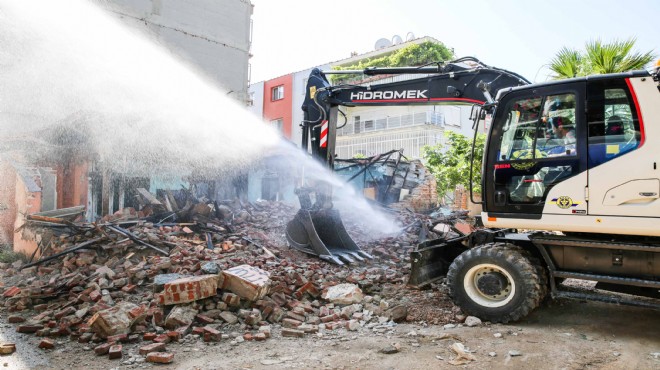 Buca Belediyesi, vatandaşlardan gelen şikayet üzerine madde bağımlılarının mesken tuttuğu metruk binayı yıktı.