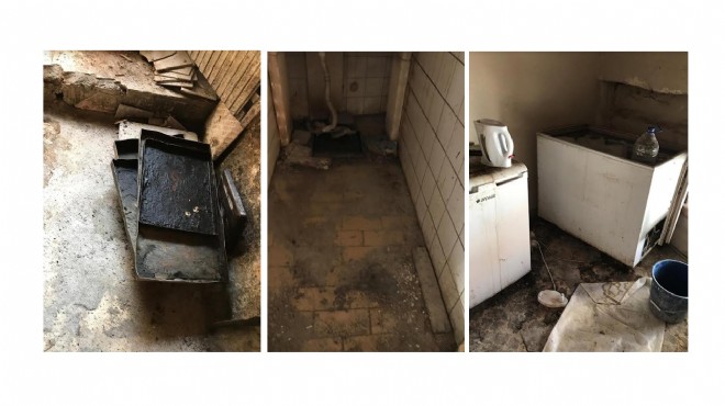 Buca Kasaplar Meydanı yakınlarında tek katlı eski ekmek fırınında, kir ve pas bağlamış duvarlarda asılı iş önlüklerinden yerde duran paslı fırın tepsilerine, açık tuvaletten hamur teknelerine kadar birçok alanda insan sağlığını tehlikeye atacak ve yönetmeliğe aykırı unsurlar tespit edildi.