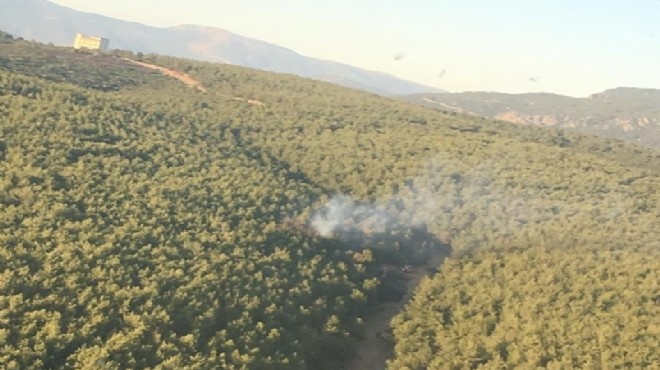 Yangına 2 helikopter ve 4 arazöz ile müdahale ediliyor.(AA)