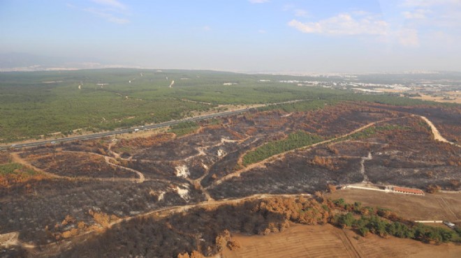 İzmir Orman Bölge Müdürü Şahin Aybal, yapılan çalışmaları havadan helikopterle yerinde denetledi. Yangının, İzmir'in gözbebeği olan binlerce hektarlık Buca Ormanlarını yakabilecek riske sahipken, gerek havadan gerekse yerden yapılan hızlı ve yerinde müdahaleyle 60 hektarlık alanda tutulduğunu kaydeden Aybal, "Her zaman söylediğimiz gibi biz yanan orman alanlarını yılı içinde yeniden ağaçlandırıyoruz. Şu anda bu bölgede 4'er kişilik 7 çalışma postası ve iş makinelerinin desteği ile saha enkazlardan temizleniyor. Eylül başı gibi de dozerlerimiz sahaya girerek, toprağı sürüp, işleyecek, fidan dikimine hazır hale getirilecek. Kasım ayından itibaren de ilk fidanları toprakla buluşturacağız. Sahaya yaklaşık 100 bin adet çeşitli türlerde fidanlar dikeceğiz" dedi. (DHA)