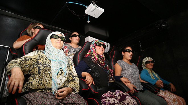 İlginç film gösterimine çocuklar kadar büyüklerde ilgi gösterdi. Karacaağaç köyünün 70 yaşındaki sakini Memnune Yıldırım özel izinle girdiği 12 D film gösterim aracında hayatında bir ilki yaşadı. “Böyle şeyler bizim zamanımızda yoktu. Çok ilgimi çekti. Dayanamadım, rica ettim aldılar” diyen Memnune Yıldırım, filmi izlerken kendimi memleketi Ordu’nun yaylalarında hissedip, mutlu olduğunu ifade etti.