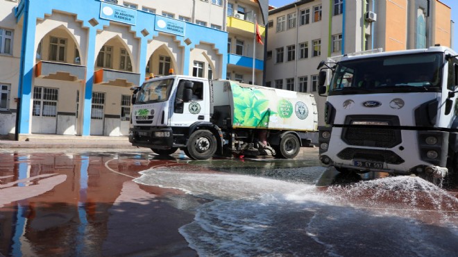Eğitime desteğini sürdüren Buca Belediyesi, ilçedeki okullarda temizlik çalışması gerçekleştiriyor. Temizlik İşleri Müdürlüğü’ne bağlı ekipler arazöz ve büyük süpürge araçları ile tüm okul bahçesini baştan aşağı yıkıyor. Park ve Bahçeler Müdürlüğü ekipleri ise okullardan gelen talepleri değerlendirerek, bahçelerdeki ağaçların budamasını ve bakımlarını yapıyor.