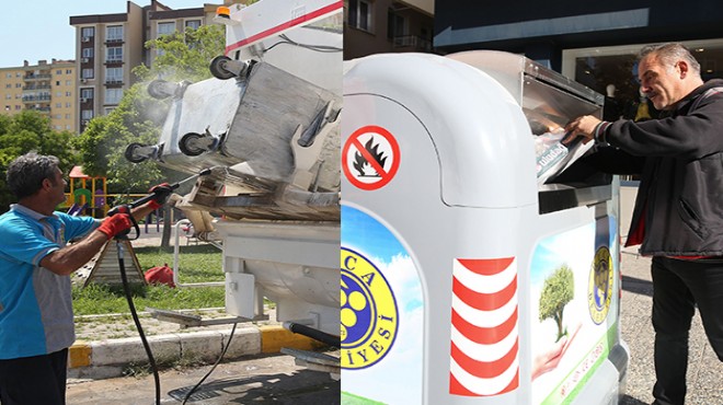 Sokaklar, pazar yerleri, ibadethaneler ve okullarda düzenli olarak süpürge yapan ekipler, kentin farklı noktalarında yer alan 5200 adet çöp konteyneri dezenfekte edip yıkayarak da kötü koku oluşumunu ve çirkin görüntüyü ortadan kaldırıyor.