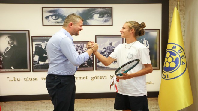 Buca Belediye Başkanı Görkem Duman, Türkiye Tenis Federasyonu’nun 26-31 Ağustos tarihlerinde İstanbul’da düzenlediği 14 Yaş Türkiye Çiftler Şampiyonası’nda birinci olan Belediye Spor Kulübü sporcusu Yağız Gündoğdu’yu ağırladı. Gündoğdu’ya ziyarette Buca Belediyesi Spor Kulübü Başkanı Münir Yersu, antrenörü Raşit Şenyuva ve annesi Bilgen Gündoğdu eşlik etti. Başarılı sporcu kazandığı plaketi Başkan Görkem Duman’a takdim etti.
