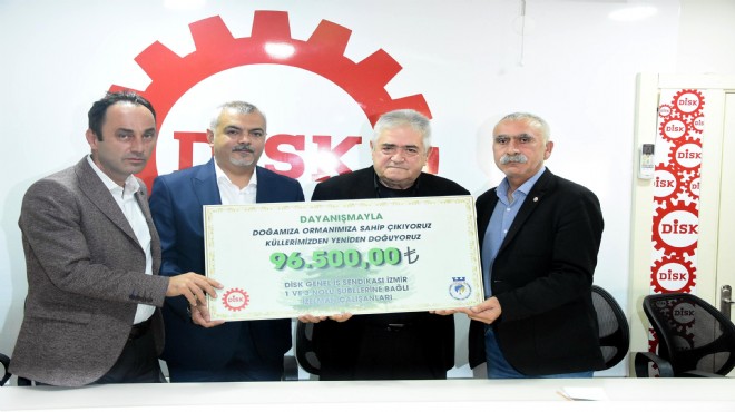 İZELMAN'da örgütlü olan, DİSK'e bağlı Genel İş Sendikası'nın 1 ve 3 No'lu şubelerinin üyeleri, 18 Ağustos'ta Karabağlar'ın Tırazlı Mahallesi'nde başlayan daha sonra Seferihisar ve Menderes'in mahallelerine de sıçrayıp, yaklaşık 500 hektar orman alanını kül eden yangınla ilgili Büyükşehir Belediye Başkanı Tunç Soyer'in başlattığı kampanyaya destek verdi. İşçiler, üyelerinden topladıkları 96 bin 500 TL'yi kül olan orman alanlarının 'Emek Ormanı' adı altında yeniden yeşermesi için İZELMAN Genel Müdürü Burak Alp Ersen'e verdi.