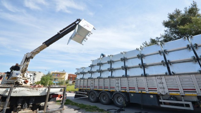 İzmir Büyükşehir Belediyesi daha temiz ve sağlıklı bir kent hedefiyle çalışmalarını sürdürüyor. İlçe belediyelerinin temizlik hizmetlerine modern araçlarla destek olan Büyükşehir Belediyesi, bir yandan da çöp konteyneri dağıtıyor. Büyükşehir son olarak 30 ilçe belediyesine toplam 5 bin 500 yeni çöp konteyneri hibe etti. Geçen yıl dağıtılan 6 bin çöp konteyneri ile hibe edilen çöp konteyneri sayısı 11 bin 500'e ulaştı. Çöp konteynerlerinin dağıtımı ilçelerin nüfus yoğunluğuna göre belirlendi. TSE'ye uygun, galvaniz kaplamalı metal çöp konteynerlerinin kapasitesi ise 770 litre.