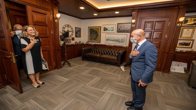 Kosova Cumhuriyeti İstanbul Başkonsolosu Suzan Novoberdaliu, İzmir Büyükşehir Belediye Başkanı Tunç Soyer’i makamında ziyaret etti. Türkiye’nin her zaman Kosova’nın yanında olduğu söyleyen ve bu nedenle teşekkür eden Suzan Novoberdaliu, Türkiye’de olmaktan duyduğu mutluluğu belirtti.