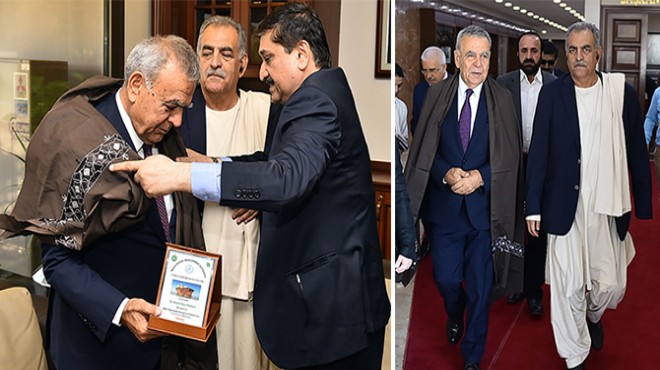 Pakistan'ın İzmir Fahri Konsolosu Cahit Yaşar Eren'in de hazır bulunduğu ziyarette Başkan Kocaoğlu’na, Pakistan kültürünün geleneksel kıyafetleri arasında yer alan "dupatta" adlı şal hediye edildi.![]() |