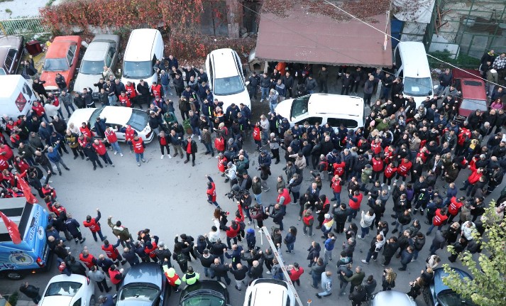 Dün yaşanan toplantıdan olumlu sonuç çıkmayınca eylem planını uygulama koydu. Sabah saatlerinde işçiler sendika binası önünde toplandı.
