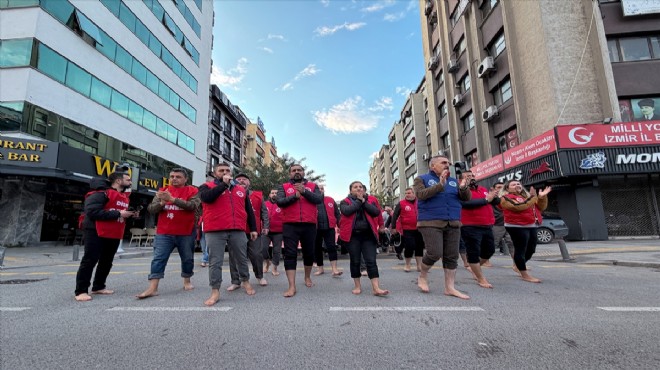 GERÇEKİZMİR - İzmir Büyükşehir Belediyesi şirketlerinde yaşanan ödeme krizi sonrasında işçiler 8 Aralık Pazartesi günü iş bırakmış ve sendika binası önünde toplanarak Fuar Basmane Kapısı’na ‘çıplak ayak’ yürüyüşü gerçekleştirmişti.