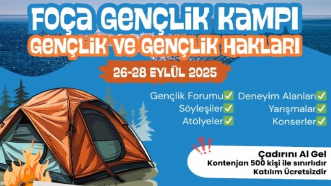 İzmir Büyükşehir Belediye Başkanı Dr. Cemil Tugay’ın “genç dostu kent” vizyonuyla 26-28 Eylül tarihlerinde dopdolu bir gençlik kampı programı hazırlandı. Foça’nın Kumburnu Plajı’nda 3 gün sürecek çadır kampı süresince katılımcılar hem üretecek hem bol bol eğlenecek. Gençlik forumunda fikir alışverişinde bulunacak katılımcılar deneyim alanlarında pratik bilgi edinecek, söyleşilerle ilham alacak ve atölyelerde yaratıcılıklarını ortaya koyacak. İzmir Büyükşehir Belediyesi ile Foça Belediyesi iş birliğiyle yapılacak kamp kapsamında konserler ve eğlenceli performanslar olacak.