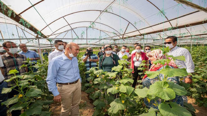 Çamönü köy meydanında üreticilere seslenen Başkan Soyer, pandemi döneminde hem üreticiyi desteklemek hem de desteğe ihtiyaç duyan ailelere dağıtmak üzere enginar, bakla, marul, patates, bezelye aldıklarını belirterek, "Şimdi de 200 ton salatalık alıyoruz. 'Bu senin işin mi?' diye soruyorlar. Evet kardeşim! Benim köylüm, çiftçim ürettiğinin karşılığını alamıyorsa, benim yaptığım asfaltın, köprünün kıymeti yok. Ürettiği salatalığın, döktüğü terin karşılığını alacak. Aksi takdirde ben o koltukta oturmam. Benim asli görevim budur" dedi.