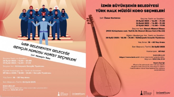Korist seçimleri tamamlanan İzmir Büyükşehir Belediyesi Türk Müziği Korosu eğitimleri ise 24 Eylül’de başlayacak ve Şef Hüseyin Tolu idaresinde olacak koro çalışmaları 18.00-21.00 saatleri arasında yapılacak.