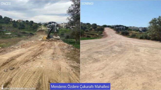 Eş zamanlı yürütülen bir diğer yol çalışması ise Menemen’de. İstiklal Mahallesi 5. Cadde ile 7440 Sokak arasında 25 metre genişliğinde 350 metre uzunluğunda ulaşım yolu açılıyor. Sevgi Caddesi'ndeki 20 metre genişliğinde 700 metre uzunluğundaki yol çalışmasının yüzde 85’i ise tamamlandı. Özellikle yeni yerleşim yerlerinin ağırlıkta olduğu noktada ulaşımı kolaylaştırmak için yapılan yollar Menemen halkına nefes aldıracak.