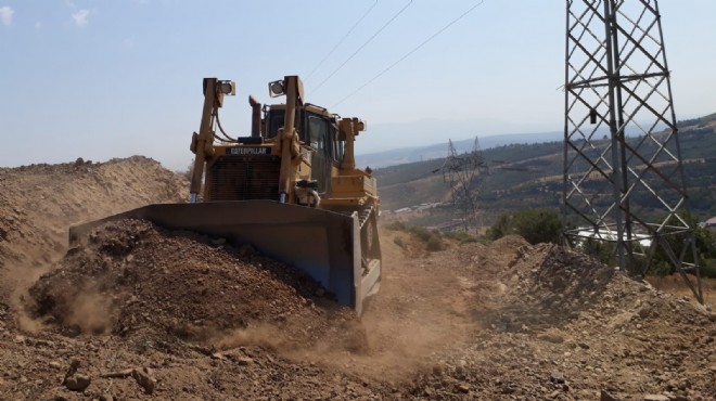 TOKİ konutlarının yanındaki arazide kurulacak İzmir Demokrasi Üniversitesi kampüs alanının yolları için İzmir Büyükşehir Belediyesi çalışmaları başlattı.