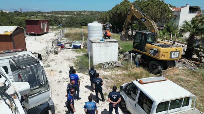 İzmir Büyükşehir Belediyesi, kaçak yapılaşmaya karşı etkin mücadele veriyor. Çeşme'nin Çiftlik Mahallesi Altınkum Pırlanta Sitesi yanında bir arazide Tiny House olarak adlandırılan ruhsatsız evlerin kaldırılmasını sağlayan İzmir Büyükşehir Belediyesi, alandaki imara aykırı yapıları da yıktı.