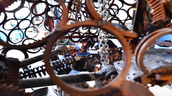 İzmir Büyükşehir Belediyesi Makine İkmal Bakım ve Onarım Daire Başkanlığı’nda görevli otomotiv teknikerleri, makine ve araçlardan çıkan atık malzemeleri sanat eserine dönüştürdü. Paslı malzemelerden heykel yaparak yaratıcılığın sınırlarını zorlayan teknikerler, her gün bambaşka fikirlerle yeni ürünler elde etme başladı.