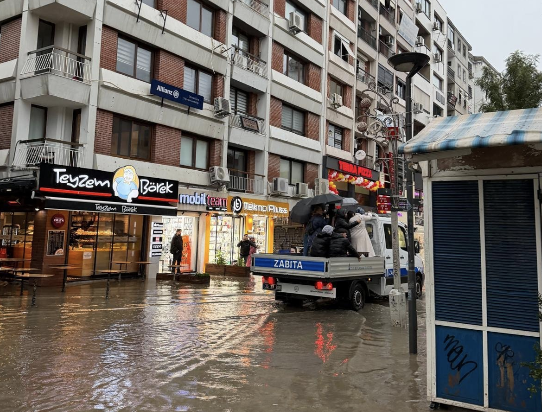 İzmir için verilen turuncu alarm ve etkili sağanak yağışlardan dolayı İzmir Büyükşehir Belediyesi Afet Koordinasyon Merkezi Şube Müdürlüğü’nde (AKOM) kurulan kriz masasıyla koordineli çalışan Zabıta Dairesi Başkanlığı’na bağlı ekipler gelen ihbarlara anında müdahale etti. Alsancak Kıbrıs Şehitleri Caddesi’nde suyla dolan alanda mahsur kalar yurttaşlar zabıta ekiplerince kurtarıldı. Vatandaşları kendi kamyonet ve hizmet araçlarıyla taşıyan ekiplerin çalışmaları sırasında yürekleri ısıtan görüntüler oluştu. Çekicilerin de sahada olduğu mesaide personel zaman zaman yurttaşları omuzlarında ve sırtında taşıdı.