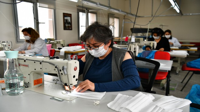 İzmir Büyükşehir Belediyesi, koronavirüs salgınına karşı tüm birimlerini harekete geçirdi. Büyükşehir Belediyesi bünyesindeki Meslek Fabrikası’nın dikiş eğitmenleri de tıbbi maske üretimine başladı. Altı eğitmen ile günde ortalama 2 bin maske dikilmesi hedefleniyor. Hijyen koşulları dikkate alınarak üretilen maskeler, Türkiye’nin tek belediye hastanesi olan Eşrefpaşa Hastanesi başta olmak üzere aile sağlık merkezleri ve hastanelere verilecek.