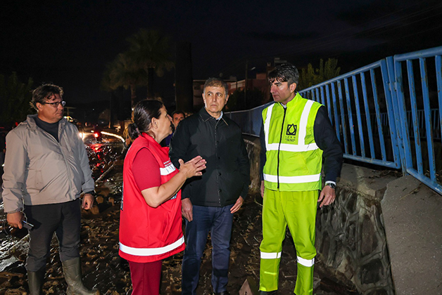 İzmir Büyükşehir Belediye Başkanı Dr. Cemil Tugay, sağanak yağışın yaşamı olumsuz etkilediği Foça’da İZSU ve itfaiye ekipleri başta olmak üzere İzmir Büyükşehir Belediyesi birimlerinin çalışmalarını inceledi. Başkan Tugay, mağduriyet yaşayan esnaf ve yurttaşları ziyaret ederek eksikliklerin giderilmesi için talimat verdi. Büyükşehir ekipleri, ilçede 197 araç ve 350 personelle yaşamı normale döndürmek için var gücüyle çalışıyor.
