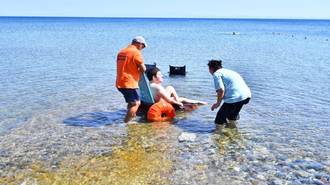 İzmir Büyükşehir Belediyesi Engelsiz İzmir Şube Müdürlüğü, denize gitmek isteyen engelli yurttaşlara engelsiz ulaşım araçları ile destek oluyor. Büyükşehir’in engellilerin erişimine uygun araçlarıyla engelli rampası bulunan plajlara giden yurttaşlar, özgürlüğe kulaç atıyor.