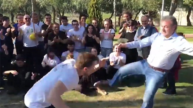 Çocuk ve gençlere çok önem veren İduğ, eşiyle birlikte Aşık Veysel Rekreasyon Alanı’nda çıktığı yürüyüşte capoeira dansçısı gençlerle karşılaştı.
