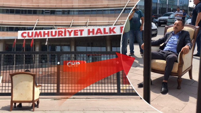 CHP Ankara Keçiören İlçe Teşkilatı üyesi Abbas Canyurt, evinden getirdiği koltukla CHP Genel Merkezi önünde oturarak eylem yapmaya başladı. CHP’de yönetimin değişmesi için böyle bir eylem yapma gereği duyduğunu söyleyen Abbas Canyurt, koltuk sevdasına dikkat çekmeyi amaçladığını söyledi. Partisiyle ilgili herhangi bir problemi olmadığını kaydeden Canyurt şöyle konuştu: