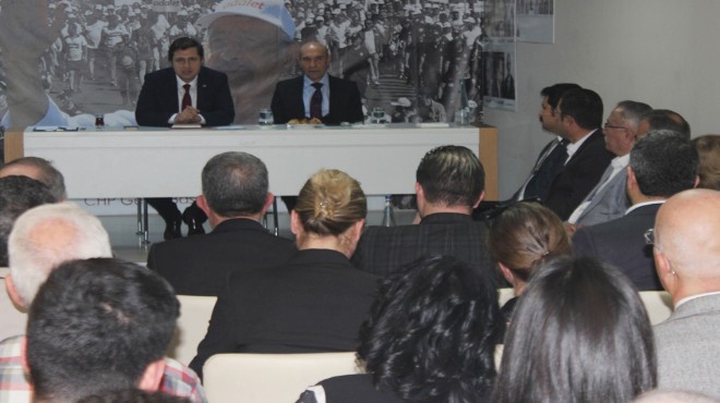 CHP İl Başkanı Deniz Yücel ve İzmir Büyükşehir Belediye Başkanı Tunç Soyer il binasında düzenlenen toplantıda ilçe başkanları ile bir araya geldi.