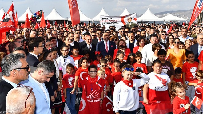 GERÇEKİZMİR - Cumhuriyet'in kuruluşunun 100. yıl dönümü ve 29 Ekim Cumhuriyet Bayramı yurdun dört bir yanında büyük coşkuyla kutlanırken, Cumhuriyet Halk Partisi (CHP) İzmir İl Başkanlığı da bir tören düzenledi.