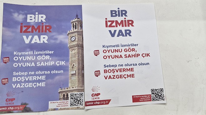 İzmir’in 30 ilçesinin en işlek caddelerinde dağıtılacak broşürlerde ‘Bir İzmir Var’ başlığı altında “Kıymetli İzmirliler, oyunu gör, oyuna sahip çık… Sebep ne olursa olsun boş verme, vazgeçme!” ifadeleri yer aldı.