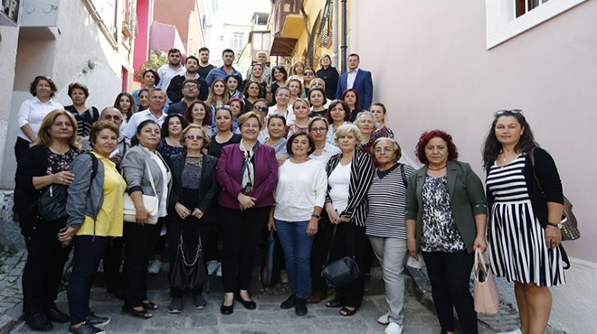 Konak Belediyesi’nin restore ederek geçen ay yeniden hizmete açtığı İsmet İnönü Anı Evi’nde gerçekleşen basın açıklamasına CHP İzmir İl Kadın Kolları Başkanı Nurşen Balcı, Konak Belediye Başkanı Sema Pekdaş, ilçe kadın kolları başkanları ile ilçe örgütlerinden kadınlar katıldı.