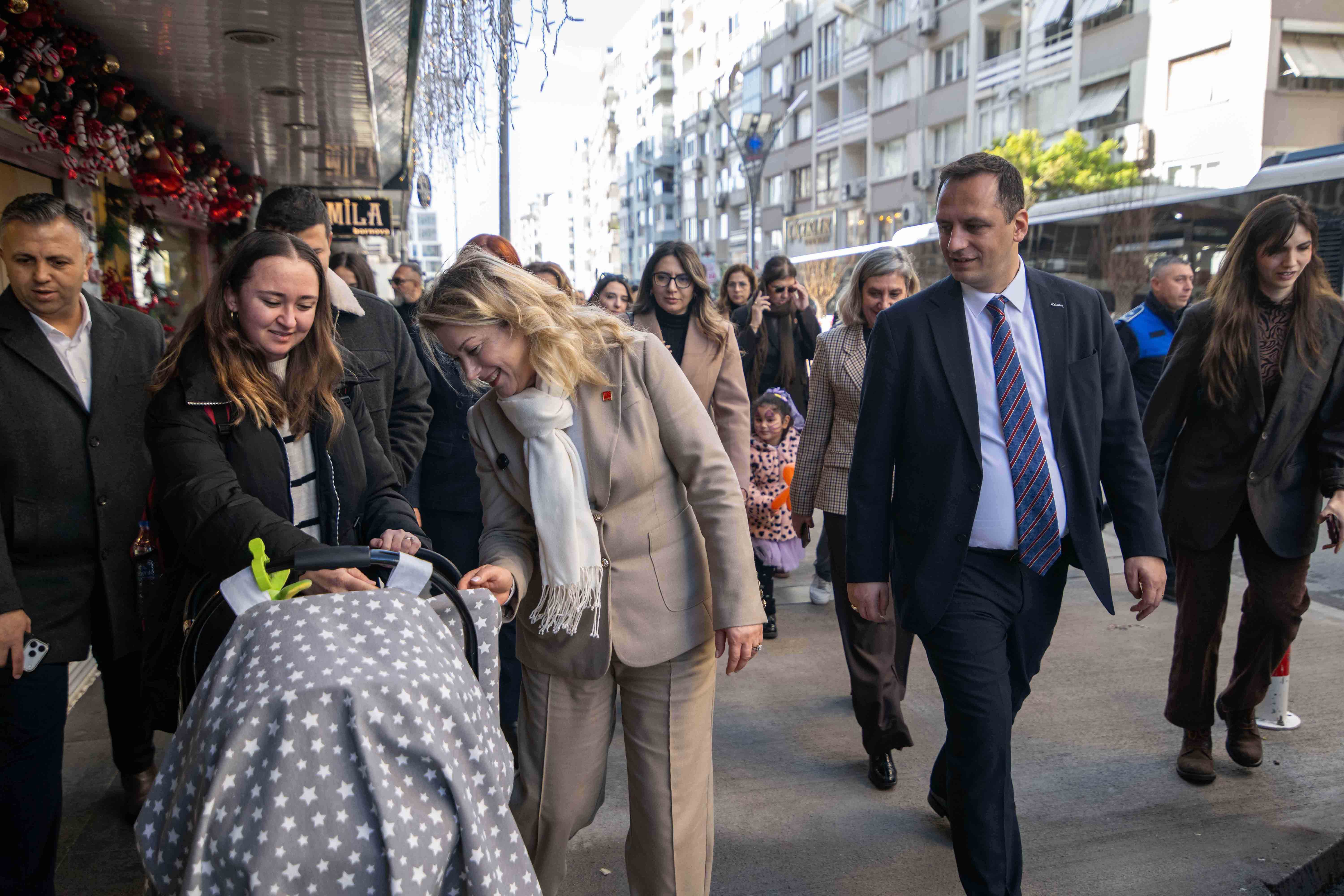 Ziyaret programına, kısa süre önce kent kültürüne kazandırılan Abide-i Hürriyet Meydanı ile başlandı. Ardından Kızılay Mahallesi Kent Kasap ve Kent Lokantası, Bornova Merkez Kent Market, EVKA-4 ve Pınarbaşı Kent Bostanları ile Belediye Fidanlığı gezildi. Bostanlarda üretim yapan kadınlarla sohbet edilerek projelerin etkileri yerinde değerlendirildi.