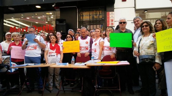Karşıyaka Çarşısı'ndaki CHP ilçe binası önünde başlatılan imza kampanyasına İlçe Başkanı Uğur Yıldırım, yönetim kurulu üyeleri, emekliler, emeklilikte yaşa takılanlar, onların aileleri, Karşıyaka belediye meclis üyeleri ve vatandaşlar katıldı.