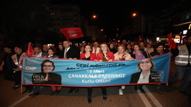 CHP Konak Belediye Başkan Adayı Nilüfer Çınarlı Mutlu, 18 Mart Çanakkale Zaferi ve Şehitleri Anma Yürüyüşü'ne de katıldı. CHP Konak ve Karabağlar ilçe örgütlerinin çağrısıyla toplanan ve yüzlerce kişiden oluşan kortej, ellerinde CHP ve Türk bayraklarıyla Fahrettin Altay Meydanı'ndan Uğur Mumcu Parkı'na kadar yürüdü. Seçim şarkıları ve marşlar eşliğinde zafer coşkusunun doruk yaptığı yürüyüşte, Mutlu'nun yanı sıra İzmir Milletvekili Ednan Arslan, Karabağlar Belediye Başkan Adayı Helil Kınay, Konak İlçe Başkanı Ozan Ali İlgazi, Karabağlar İlçe Başkanı Bülent Sözüpek, il ve ilçe yöneticileri, meclis üyesi adayları, partililer ve vatandaşlar yer aldı. "Geri dönmeyi asla düşünmediler" yazılı pankartın taşındığı yürüyüşte sık sık "Birleşe birleşe kazanacağız", "Türkiye laiktir laik kalacak", "Mustafa Kemal'in askerleriyiz" ve "Her şey çok güzel olacak" sloganları atıldı. CHP’li bazı gençler ellerine meşaleler alarak yürüyüşe katılırken, çok sayıda kişi de balkonlardan el sallayarak, slogan atarak destek verdi.