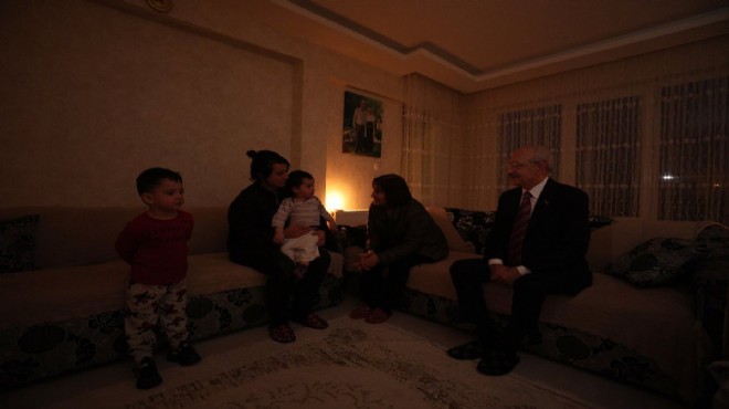 Evindeki elektriği kesildiği için bir hafta elektriksiz kalan ve yüksek zamları protesto eden CHP Genel Başkanı Kemal Kılıçdaroğlu, eşi Selvi Kılıçdaroğlu ile birlikte bu akşam Keçiören ilçesi Karakaya Mahallesi'nde elektriği 4 aydır kesik olan ailenin evine dayanışma ziyaretinde bulundu. 3 çocuklu Demir ailesini ziyareti sonrasında Kılıçdaroğlu, basın mensuplarına açıklama yaptı.