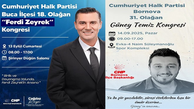Öte yandan CHP Bornova İlçe Kongresi de Manisa Büyükşehir Belediyesi'nde daire başkanı olarak görev yaparken geçtiğimiz mart ayında geçirdiği kalp krizi sonrası hayatını kaybeden Güney Temiz’in adını taşıyacak.