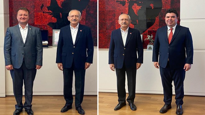 Kılıç'a CHP Buca İlçe Başkanı Hacer Taş, Aksoy'a da CHP Menemen İlçe Başkanı Turan Erdoğan'ın eşlik ettiği ziyaretlerde heyetler CHP Lideri Kılıçdaroğlu'na ilçelerdeki çalışmalar hakkında rapor sundu.