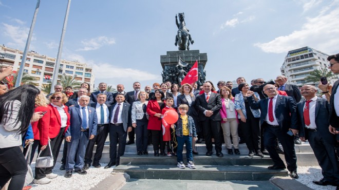 Büyükşehir Belediye Başkanı Tunç Soyer, 23 Nisan Ulusal Egemenlik ve Çocuk Bayramı kapsamında Cumhuriyet Halk Partisi (CHP) İzmir İl Başkanlığı’nın düzenlediği kutlama programına katıldı. Cumhuriyet Meydanı’nda düzenlenen törene Başkan Tunç Soyer’in yanı sıra CHP İzmir İl Başkanı Şenol Aslanoğlu, CHP İzmir milletvekilleri, Millet İttifakı İzmir Milletvekili adayları, ilçe belediye başkanları, ilçe başkanları, meclis üyeleri, muhtarlar ve çok sayıda partili katıldı. Törende İl Başkanı Şenol Aslanoğlu, İl Kadın Kolları Başkanı Nurdan Şenkal Uçar ve İl Gençlik Kolları Başkanı Burak Kotan Cumhuriyet Meydanı’ndaki Atatürk anıtına çelenk bıraktı.