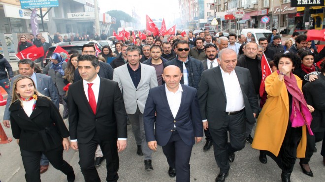 CHP İzmir Büyükşehir Belediye Başkan adayı Tunç Soyer, Menderes ziyaretinde halka seslendi, "Mustafa Kayalar ile birlikte ilçemizi daha üretkenleştireceğiz ve markalaşmasına katkı koyacağız" dedi