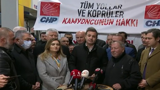 ?CHP'nin Genel Başkan Yardımcısı Ahmet Akın ve CHP Uşak Milletvekili Özkan Yalım akaryakıt, otoyol ücretleri ve maliyetlerdeki fahiş zamlara dikkat çekmek için yollara düştü. CHP'li Akın ve Yalım şoför esnasına ve taşımacılık sektörüne destek olmak için İstanbul'dan TIR'la yola çıkarak İzmir’in Bornova ilçesindeki Işıkkent Kara Nakliyecileri Sitesi’ne geldi.