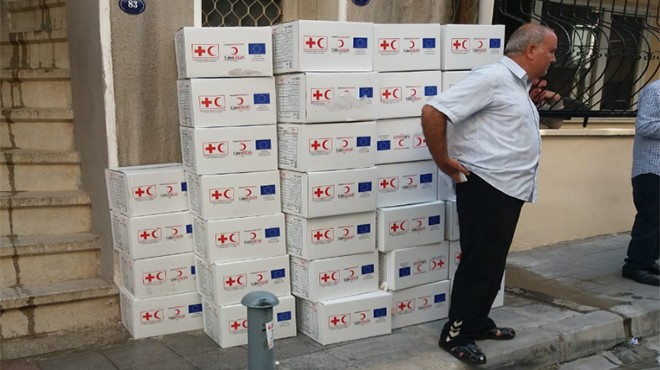 İzmir’in Konak ilçesi Altıntaş mahallesinde, Türk Kızılay’ı ve Avrupa Birliği amblemli 200 adet yardım kolisinin, İmam Hatip Lisesinde görevli bir çalışanın evinin önüne indirildiği haberine CHP İzmir Milletvekili Tacettin Bayır’dan sert tepki geldi.