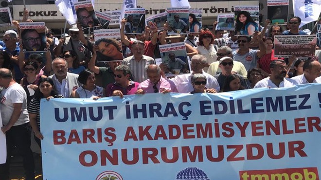 Akp’nin nitelikli eğitim ve öğretimin karşısında olduğunu bir kez daha son yayınlanan KHK ile birlikte gördüklerini belirten Bayır, "İktidarın asıl yapmak istediği sadece akademisyenleri görevlerinden alıp onları işsiz bırakmak değil. İktidarın ülkede yaşayanları açlıkla terbiye edilmesi bunun karşılığında oy alınması zaten kendi programlarının bir parçası, asıl amaçları öğrencileri, gençleri, evlatlarımızı bilgiye aç bırakmasıdır. Gerçekte yapılmak istenen sadece eğitimsiz bir nesil yaratmaktır. Çünkü kendileri de açıkça ifade etmektedirler, eğitimin yükseldiği yerde oylarımız düşüyor diye OHAL ile birlikte toplumun her alanında eşitlik, özgürlük, barış ve demokrasi isteyenler susturulmak istenmekte, işinden ve özgürlüklerinden olmaktadır. Ülkemizde umutlarımızla birlikte yok edilmek istenen adalet, büyük bir toplum kesimini harekete geçirmiş ve onu arayanları ortak bir hedefte birleştirmiştir. Emeğin, demokrasinin, hukukun, toplumsal barışın güçlenmesi için bir an evvel görevlerine yeniden kavuşmaları talebini güçlü bir şekilde dile getiriyoruz. Ülkemizde yaşananlar, kendinden olmayana, kendinden farklı düşünene, konuşana, yazana çizene, ne kadar zalimce davranıldığını bir kez daha gözler önüne seriyor. Yılmayacağız. Umutlarımızı yok etmelerine izin vermeyeceğiz" ifadelerini kullandı.