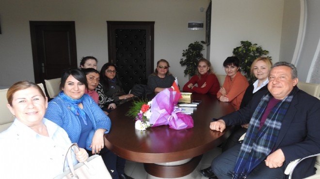 Dikili Belediye Başkanı Mustafa Tosun'un makamında gerçekleştirilen görüşmeye, CHP Dikili İlçe Kadın Kolları Başkanı Deniz Gencer, yönetim kurulu üyeleri Görkem Balaban, Şennur Erim, Figen Gençay, Gülendam Matran, Dilek Taban, Ece Türkeli, kadın kolları il kongre delegeleri Nebahat Dikmen, Fatma Erdemir, Gülsema Odabaş ile partililer Eniz Demirel ve Derya Koçak katıldı.