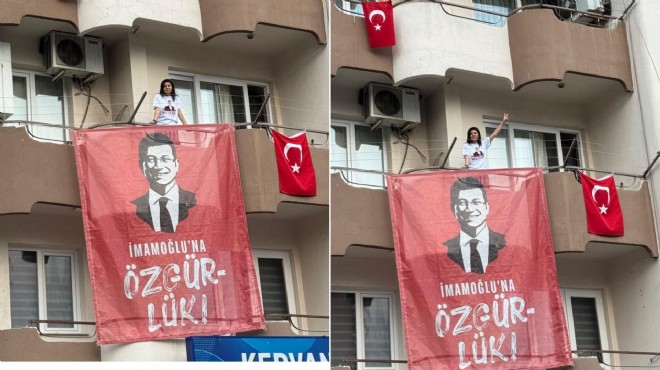 Evinin balkonuna 'İmamoğlu’na Özgürlük ' pankartı asan CHP Efes Selçuk İlçe Başkanı İpek Onbaşıoğlu, tüm yurttaşlara çağrı yaparak isteyen herkesin bu pankartı parti binasından alabileceklerini duyurdu.