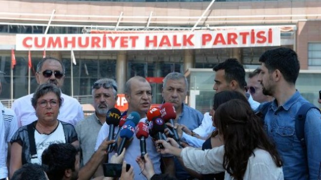 Aralarında kurultay için imza veren delegelerin de bulunduğu bir grup, olağanüstü kurultayın toplanması talebiyle CHP Genel Merkez binası önünde oturma eylemi gerçekleştiriyor.