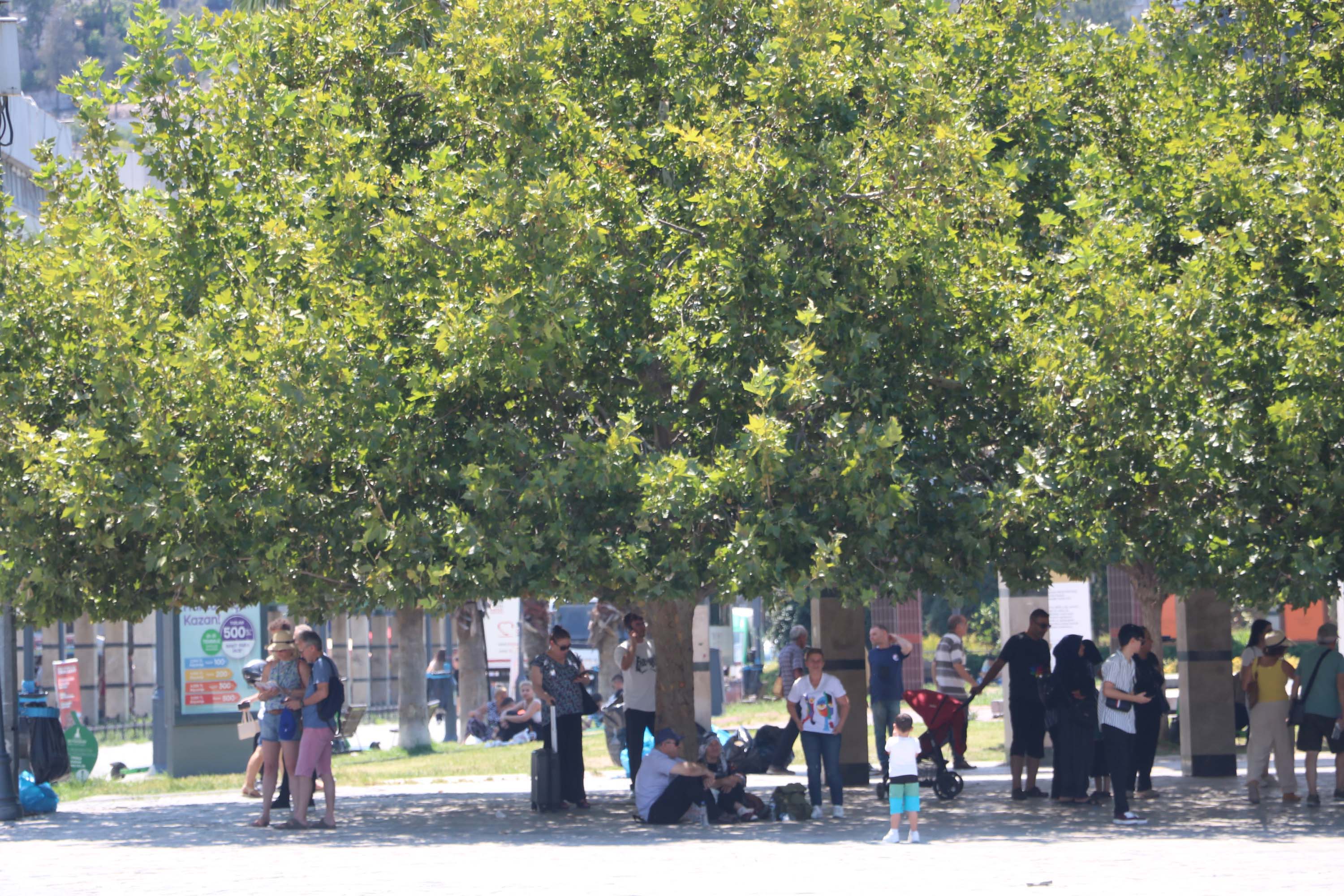 Sıcaktan bunalanlar ise aşta ağaç altları olmak üzere gölge yerleri tercih etti. Torunlarını gezdirmeye çıktığını belirten Faik Duru, "Ancak hava çok sıcak. Torunlarımı güvercinleri beslemeleri ve görmeleri için geldik. 5 dakika duramadık. Çok sıcak. Birer gevrek aldık ve bir ağaç altına oturduk. Gidecek bir yer yok burada biraz dinleneceğiz" dedi.
