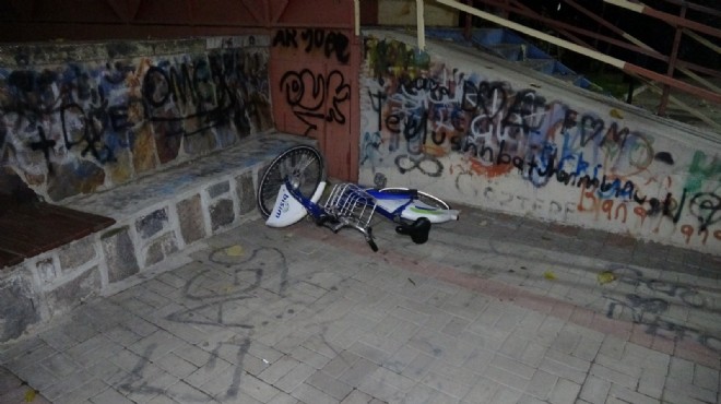 Olay, saat 03.00 sıralarında Güzelyalı Mahallesi'nde bulunan bir telefon satışı yapan işyerinde meydana geldi. İddiaya göre 3 şüpheli, İzmir Büyükşehir Belediyesi'nin Akıllı Bisiklet Kiralama Sistemi'nden 3 bisiklet çaldı. Çaldıkları bisiklet ile telefon satışı yapan mağazanın önüne gelen 3 şüpheli, ellerindeki taşlarla işyerinin camlarını kırdı. İşyerindeki alarm sistemi devreye girmesine rağmen şüpheliler, saniyeler içerisinde 25 cep telefonu ve kasadaki bir miktar parayı alarak kaçtı. Alarmın çalması nedeniyle panik yaşayan şüpheliler bisikletlerle kaçarken, çaldıkları cep telefonları ile paraları yere düşürdü.