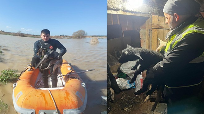 İzmir Büyükşehir Belediyesi İtfaiye Dairesi Başkanlığı ekipleri, Torbalı’nın Göllüce Mahallesi’nde sağanak yağış nedeniyle su basan bir ahırda mahsur kalan koyun ve tavukları kurtarmak için seferber oldu. Ekipler, dikkatli ve özverili bir şekilde hayvanları tahliye ederken, hayvanların yem ve su ihtiyaçlarını da karşıladı. Bir itfaiye erinin koyunları elleriyle beslemesi, bu zorlu koşullarda bile insan ve hayvan arasında güçlü bir bağın varlığını gösterdi. Aynı zamanda, bölgedeki suyun tahliyesi için su çekme çalışmaları da aralıksız sürdürüldü.